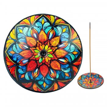 INCENSARIO PRATINHO VIDRO - MANDALA COLORIDA (M25)