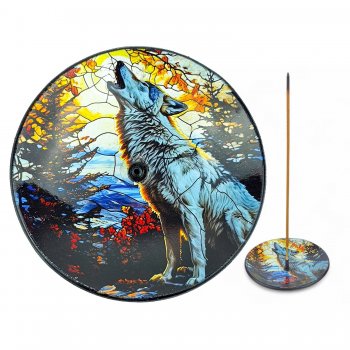 INCENSARIO PRATINHO VIDRO - LOBO SELVAGEM (A18)