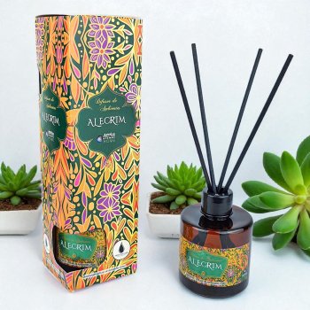 Modo de usar: abra a tampa do produto, retire o batoque protetor, feche a tampa e insira as varetas uniformemente para que a fragrância envolva todo ambiente.